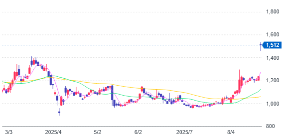 2025年4月のトランプショックのタイミングで落ち込んだ後は1000円前後でやや低迷していましたが、直近で発表のあった2026年3月期Q1の決算が好業績だったことから1,200円ほどまで戻し、そこからもみ合いといった状況でした。